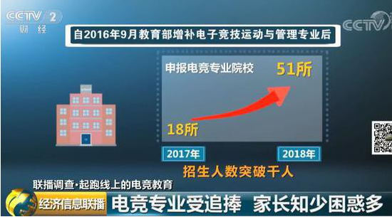 曹永軍所在的學(xué)校只是電競專業(yè)發(fā)展的一個(gè)縮影。據(jù)不完全統(tǒng)計(jì),自從2016年9月教育部增補(bǔ)了電子競技運(yùn)動與管理專業(yè)后,申報(bào)電競專業(yè)的院校從2017年的18所,增長到了2018年的51所,招生人數(shù)更是突破了千人。不過,記者發(fā)現(xiàn),報(bào)名火爆的背后,卻是家長和學(xué)生對專業(yè)的知之甚少。