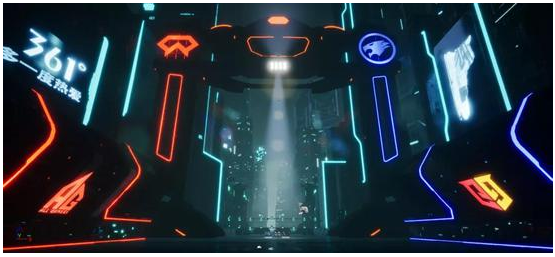 當(dāng)然,本次虛擬演播廳線上直播所運用到的技術(shù)遠(yuǎn)不止這些,更符合電競屬性、更具沉浸感的體驗也需要更多外部技術(shù)的支持。比如,賽事參考影視廣告拍攝標(biāo)準(zhǔn),搭建了一個用于虛擬摳像制作的綠箱,并配套搭建一套虛擬系統(tǒng),結(jié)合跟蹤傳感技術(shù)和次世代實時渲染技術(shù),描繪出一個電競城市的形象。在此基礎(chǔ)上,它又在ZeroDensity虛擬引擎和RayTracing光線追蹤技術(shù)的幫助下提升了未來感。