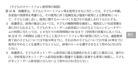 《條例》第18條中關(guān)于智能手機(jī)、游戲使用時間的規(guī)定
