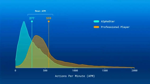 在比賽時(shí),雖然AlphaStar本身的反應(yīng)速度和行動(dòng)次數(shù)都比人類玩家要慢和少,但是往往可以做出更有效率的決策,進(jìn)而抗衡職業(yè)玩家。