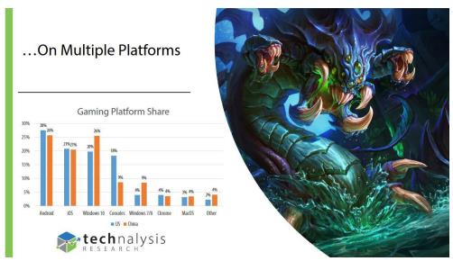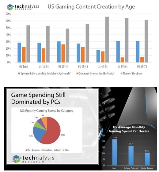 最近,市場(chǎng)調(diào)查機(jī)構(gòu)TECHnalysis Research公布了美國(guó)和中國(guó)市場(chǎng)的游戲消費(fèi)趨勢(shì)調(diào)查報(bào)告。據(jù)報(bào)告顯示中美玩家在看游戲視頻和直播上的時(shí)長(zhǎng)很接近,美國(guó)玩家平均每周花12個(gè)小時(shí)在Twitch和YouTube上看游戲內(nèi)容,中國(guó)玩家平均每周花11小時(shí)在斗魚(yú)和優(yōu)酷土豆上觀看游戲內(nèi)容。