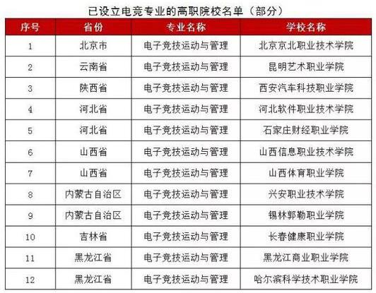 根據(jù)人社部的報(bào)告,在高校方面,中國(guó)傳媒大學(xué)(分?jǐn)?shù)線,專(zhuān)業(yè)設(shè)置)開(kāi)設(shè)了數(shù)字媒體藝術(shù)(數(shù)字娛樂(lè)方向)專(zhuān)業(yè),中國(guó)傳媒大學(xué)南廣學(xué)院、南昌工學(xué)院、四川電影電視學(xué)院、四川傳媒學(xué)院、北京吉利學(xué)院等也開(kāi)設(shè)了電競(jìng)相關(guān)專(zhuān)業(yè)。