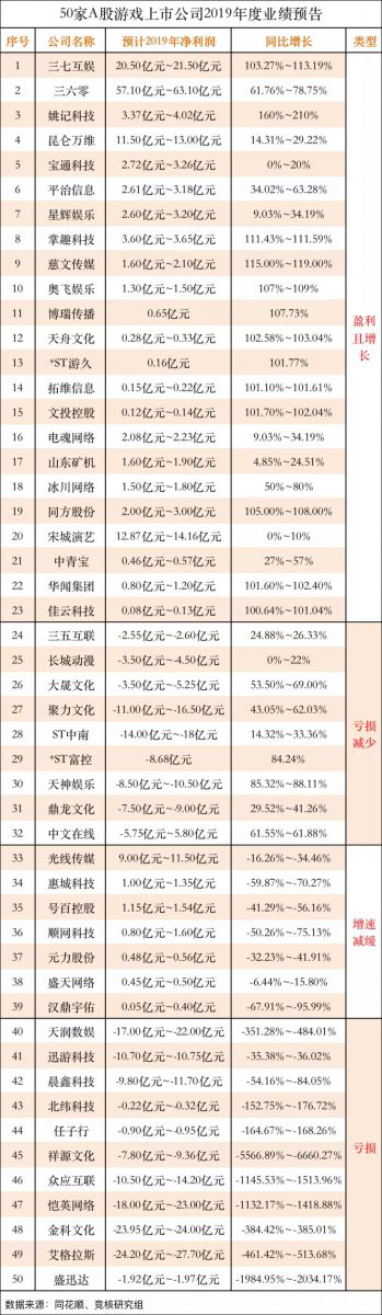 為了讓大家更多的了解A股游戲板塊,競(jìng)核亦是整理了50家游戲公司的業(yè)績(jī)報(bào)告,希望能通過(guò)直觀數(shù)據(jù)來(lái)提前了解A股游戲公司2019年的經(jīng)營(yíng)狀況。
