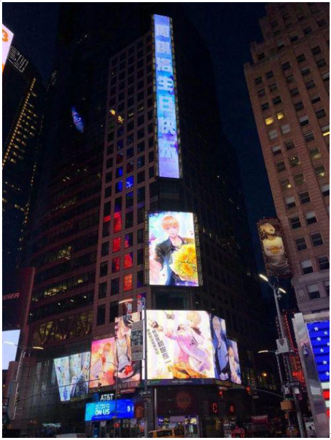 女玩家包下紐約時(shí)代廣場(chǎng)大屏為《戀與制作人》中的“周棋洛”慶生