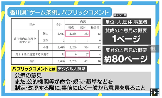 可想而知,在游戲大國日本,有關(guān)這項法案的消息一經(jīng)公布就引發(fā)了巨大爭議與激烈討論。但與人們想象中不同的是,外界爭議和討論對香川縣議會的決議并未產(chǎn)生太大影響。從1月10日提出草案,到3月18日正式通過,再到4月1日開始實施,《條例》在香川縣的推進迅速而流暢。