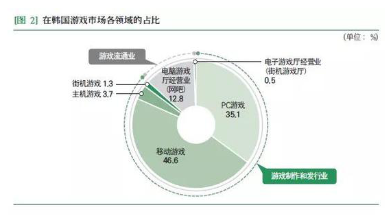 韓國官方統(tǒng)計游戲行業(yè)規(guī)模的特色,是會將網(wǎng)吧、街機游戲廳等與游戲相關(guān)的周邊產(chǎn)業(yè)鏈?zhǔn)杖爰{入計算當(dāng)中,這與韓國奉行“文化立國”的國家政策有很大關(guān)系。