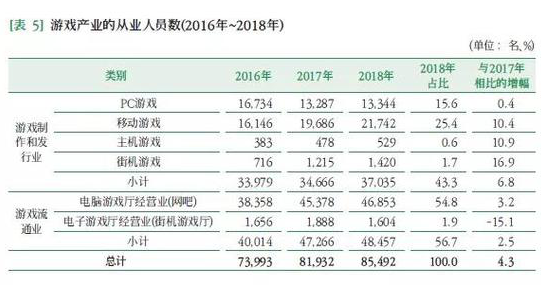 玩家數(shù)量對應(yīng)的是廠商數(shù)量,截至2018年,韓國有880家游戲研發(fā)和發(fā)行商,1.18萬家網(wǎng)吧和676個街機游戲廳,從業(yè)者數(shù)量為8.55萬人,其中,刨除網(wǎng)吧、街機廳,單單游戲研發(fā)和發(fā)行的從業(yè)者為3.7萬人。換言之,韓國880家廠商、3.7萬名從業(yè)者,撬動了14.29萬億韓元,852億人民幣產(chǎn)值,年人均創(chuàng)收230萬元。