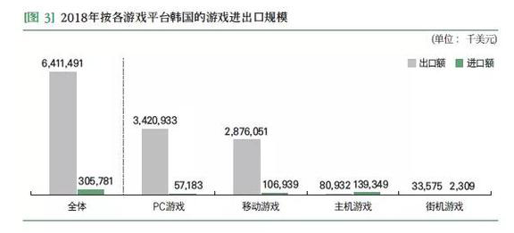 這個數(shù)字非常驚人,已經(jīng)占到2018年韓國游戲市場整體產(chǎn)值的一半。相比進口雖然增長還要更高(16.3%),但進口規(guī)模為3.05億美元,折合人民幣21億元。究其原因,和韓國廠商研發(fā)能力強,實力雄厚有莫大關(guān)系,如和中國不同,韓國游戲出海大頭是PC游戲,除了早年的《穿越火線》《DNF》《傳奇》,也有近年的《絕地求生》《黑色沙漠》等。