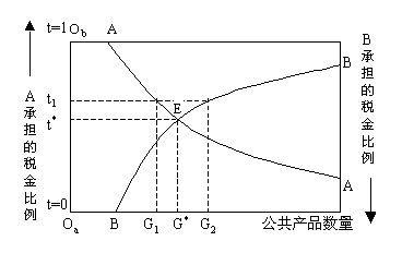 假設(shè)張三和李四同時管王五租《生化危機(jī)3》來爽爽,我們設(shè)橫軸為可游玩時長,縱軸自下而上為張三承擔(dān)的花費份額(a),自上而下為李四承擔(dān)的份額(b)。假如二人支付王五的份額分別為t1(張三)和1-t1(李四),很明顯此時,張三要求的游玩時長是G1,而李四要求的是G2,很明顯要求不一致,無法達(dá)成均衡,那么也就無法完成這場三方交易。那么王五自然可以提出動議,調(diào)整雙方份額,調(diào)低張三的支出以提高其需求,提高李四的份額以降低其需求,直到雙方對可游玩時長達(dá)到相同的需求為止,而E點所對應(yīng)的游玩時長G*和相應(yīng)的份額結(jié)構(gòu)(t0,1-t0),這就是林達(dá)爾均衡。