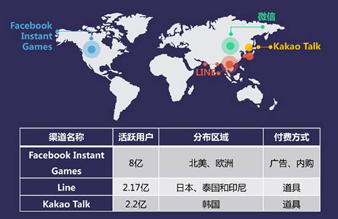 潮平兩岸闊,風正一帆懸,小游戲的發(fā)展不僅是“風景這邊獨好”。雖然小游戲在國內(nèi)發(fā)展稍快于歐洲、北美,但海外社交平臺Facebook、Line和Kakao Talk等巨頭也已瞄準時機布局小游戲市場。Facebook于2016年斥巨資面向20億用戶推出HTML5小游戲平臺Instant Games,該平臺于今年3月正式開放游戲提交,并提供廣告、內(nèi)購變現(xiàn)方式。