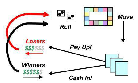 隨著差距擴(kuò)大,最后只有少數(shù)(有時(shí)只有一個)玩家真正投入游戲中(此處指優(yōu)勢和劣勢玩家差異過大,有的玩家錢太少就不想玩了)。此時(shí)戲劇性的緊張和玩家參與的能動性就消失了。