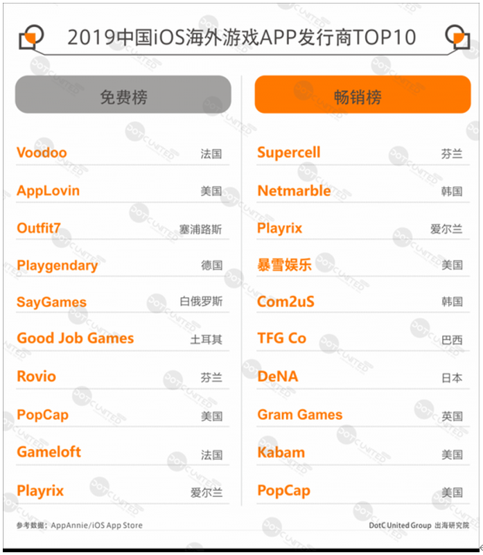 統(tǒng)計(jì)中國(guó)iOS App Store游戲榜TOP200結(jié)果顯示,免費(fèi)榜TOP200中,海外游戲約30余款,約占16%。暢銷榜TOP200中海外游戲僅10余款,上述也有提及,中國(guó)雖不是高度封閉的市場(chǎng),但本土廠商實(shí)力強(qiáng)勁,只有海外極少數(shù)大廠的游戲能分得一杯羹。