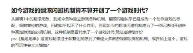 翻滾閃避的動作并不真實,可在游戲中,判斷閃避的好壞,關(guān)鍵不在于它是否真實,而在于它能否讓玩家覺得合理、好用。