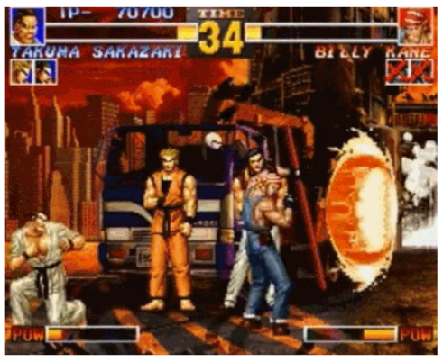不少格斗游戲中也能看到翻滾式的閃避,本來《拳皇》系列的閃避是原地的躲閃,可以用來躲開波動拳一類的招式。但閃避的人只能呆著在原地,無法還擊,閃避之后還是屬于被壓制的一方。