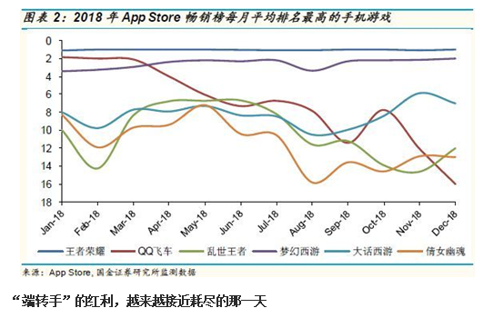 2018年,《傳奇世界》《奇跡》等老牌端游再次被改編為手游;《魔力寶貝》這種十幾年前的MMORPG也被搬上手機(jī);資歷最老的《石器時(shí)代》也開(kāi)始了手游內(nèi)測(cè)。我們估計(jì),到了2019年,騰訊、網(wǎng)易兩巨頭總共只剩下十幾個(gè)有號(hào)召力的端游IP尚待改編。等到《地下城與勇士》《魔獸世界》這些“千呼萬(wàn)喚始出來(lái)”的手游產(chǎn)品上線之后,“端轉(zhuǎn)手”的紅利就會(huì)徹底結(jié)束。與此同時(shí),中國(guó)端游市場(chǎng)早已走了下坡路,不可能持續(xù)供應(yīng)新的優(yōu)質(zhì)IP;海外優(yōu)質(zhì)端游也無(wú)法滿足無(wú)休止的消耗。