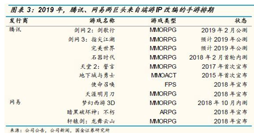 2019年上半年,被期待已久的《劍網(wǎng)2》《劍網(wǎng)3》手游均將上線。我們認(rèn)為,《劍網(wǎng)3》不斷推遲上線的主要原因是產(chǎn)品尚不成熟;而且,2018年下半年“端轉(zhuǎn)手”產(chǎn)品的市場(chǎng)表現(xiàn)普遍不太好。西山居的研發(fā)實(shí)力不容懷疑,在歷史上,《劍俠情緣》手游也出現(xiàn)過(guò)延期,但是上線之后的效果很好。我們相信,《劍網(wǎng)3》滿足上線條件之后會(huì)帶來(lái)驚喜。