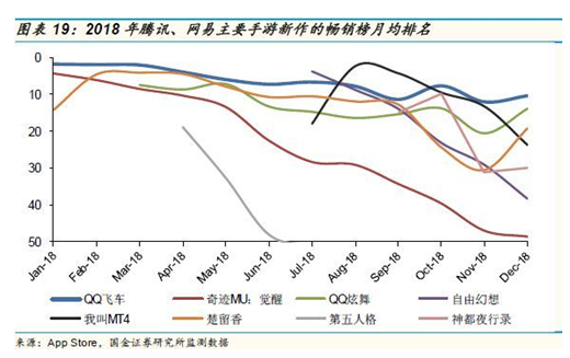 玩家出現(xiàn)審美疲勞,商業(yè)化面臨瓶頸:2018年,游戲行業(yè)面臨的最嚴(yán)峻問(wèn)題還不是版號(hào)暫停,而是頭部游戲生命周期的縮短。例如,在騰訊發(fā)行的新游戲中,只有《QQ飛車(chē)》的App Store暢銷榜排名比較穩(wěn)定;《奇跡:覺(jué)醒》《QQ炫舞》《自由幻想》《我叫MT4》……衰減速度都很快,甚至淪為“一波流”。網(wǎng)易的情況也不算好,新游戲里只有《楚留香》在暢銷榜前列停留了半年以上,被寄予厚望的《神都夜行錄》僅僅保持了兩個(gè)月的熱度。雖然手游產(chǎn)品的生命周期本來(lái)就不長(zhǎng),但是在歷史上,主流發(fā)行商還是經(jīng)常能推出“常青樹(shù)”產(chǎn)品,連續(xù)1-2年位居暢銷榜前列的不在少數(shù)?,F(xiàn)在,即便是集中了優(yōu)質(zhì)資源的頭部產(chǎn)品,生命周期也越來(lái)越短了。