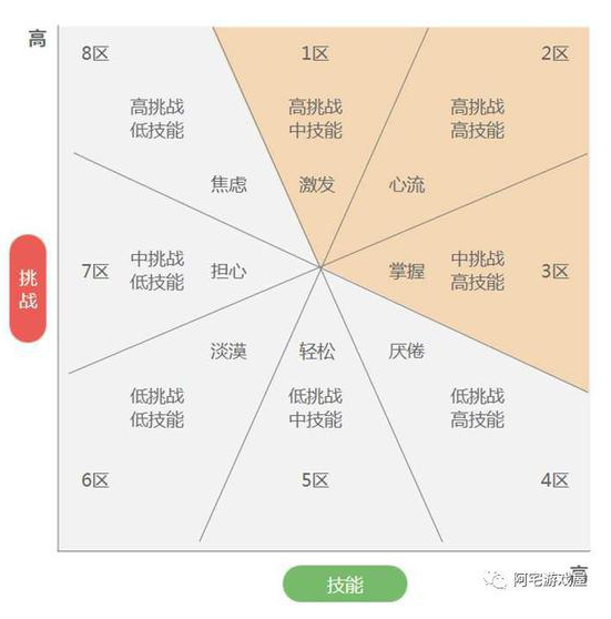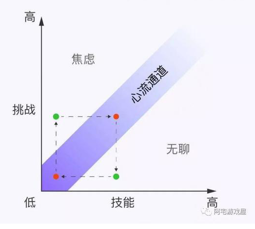 通過上面兩個模型我們可以知道,當玩家的能力技巧高于游戲給出的挑戰(zhàn)時,玩家就會感到無聊;而當玩家的能力技巧低于游戲給出的挑戰(zhàn)時,玩家就會陷入焦慮。且能力技巧與游戲給出的挑戰(zhàn)差距越大,這種感受就越明顯。只有當兩者接近,玩家才能進入心流。