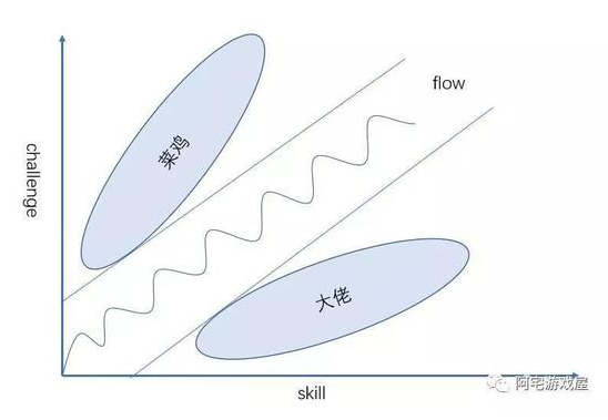 所以,游戲設計師設計游戲時,要絞盡腦汁的使游戲難度接近于目標玩家群體的水平,使玩家盡可能多時間停留在心流狀態(tài),對游戲保持熱情。