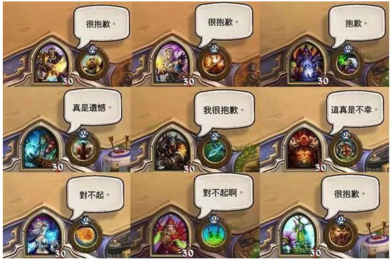 爐石傳說雖然有著龐大的良好的社交群體氛圍如:艾澤拉斯地理論壇,旅法師營地等,但是爐石傳說的交流性在游戲內(nèi)部也被削弱了,如果是非好友的話只能通過六個不同的語音選項框來與對手互動。