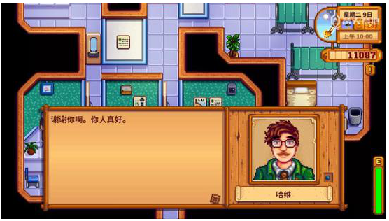 “謝謝你啊,你人真好?!钡任野焉虾玫碾u蛋送到了哈維醫(yī)生的手中后,我又隨即轉(zhuǎn)身去找其他的 NPC,給他們送上喜好的東西,“這東西好酷!謝謝你啊?!眮啔v克斯接過(guò)東西后笑的特別燦爛,“大雨阻止不了我完成工作!”羅賓收到土豆后也干勁十足。