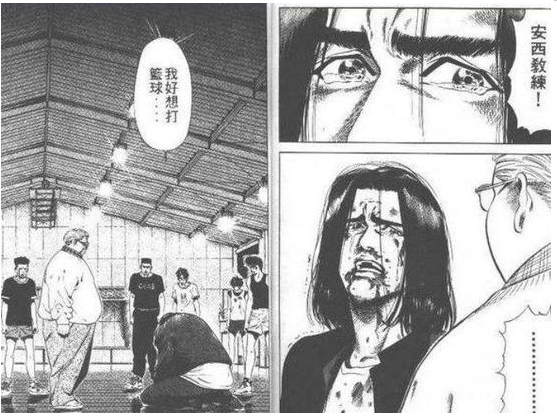 《灌籃高手》中籃球館暴力事件三井壽一句“教練,我想打籃球”將所有觀眾的情緒引爆,劇情達(dá)到高潮。而也正是這句“教練,我想打籃球”記錄了無數(shù)人的青春,每每看到這句話眼前就會(huì)情不自禁的浮現(xiàn)出那個(gè)誤入歧途的長(zhǎng)發(fā)男孩跪在安西教練面前哭泣的樣子。