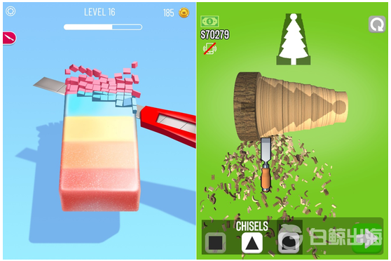 《Soap Cutting》(左)和《Woodturning》(右)的玩法都是用刀將物體進(jìn)行切割