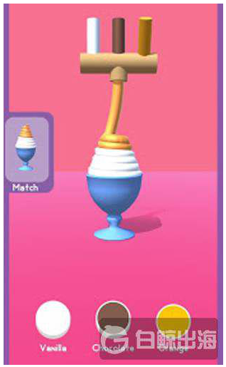 在超休閑游戲下載總榜單第 10 位的《Ice Cream Inc?!愤\(yùn)用了配色機(jī)制。游戲中,玩家需要根據(jù)關(guān)卡的要求,選擇不同顏色的冰淇淋,從而搭配出游戲要求的冰淇淋樣式。